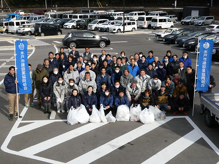 当組合は2月10日、水戸の梅まつり開催に先立ち、千波湖周辺で清掃ボランティアを行いました。会員企業から約70人が参加し、湖周辺の通路や広場などのごみを拾い集めました。